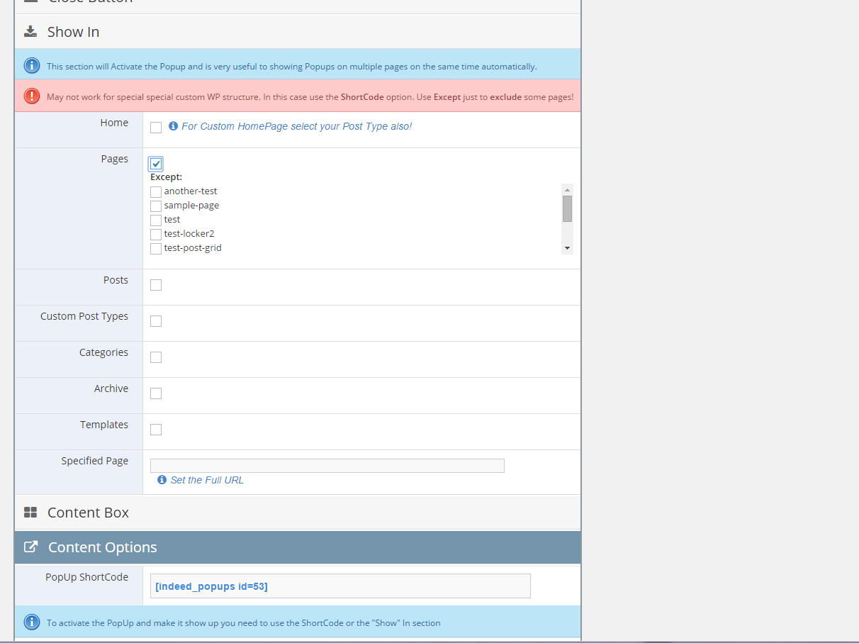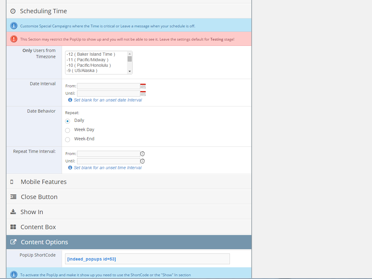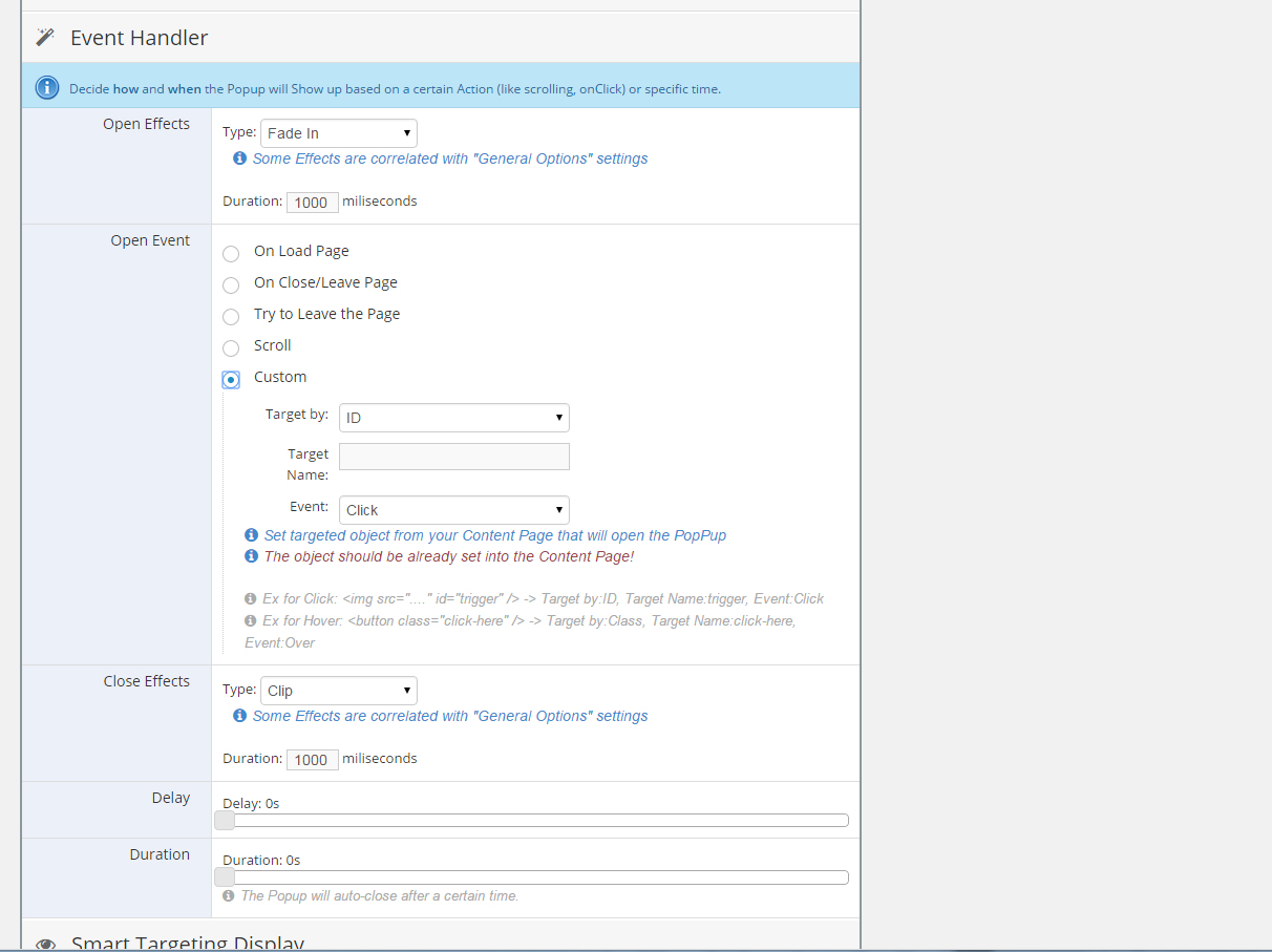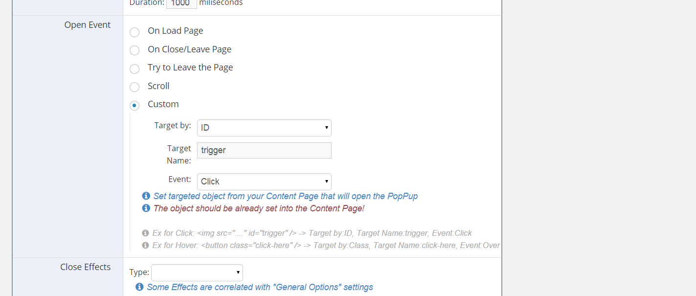 On this section you decide which type and what content do you wanna set into your custom Popup.