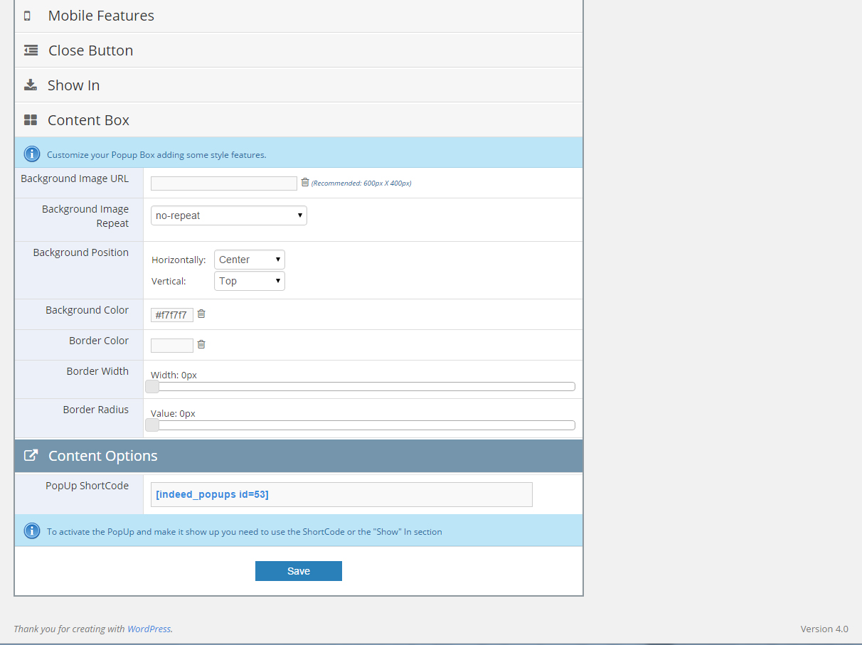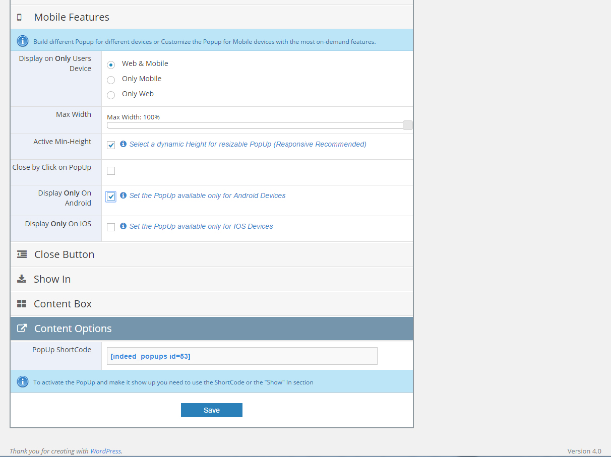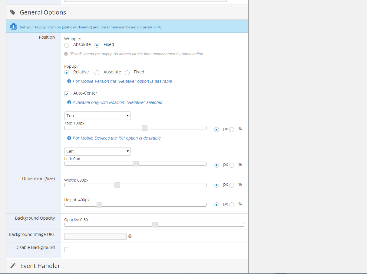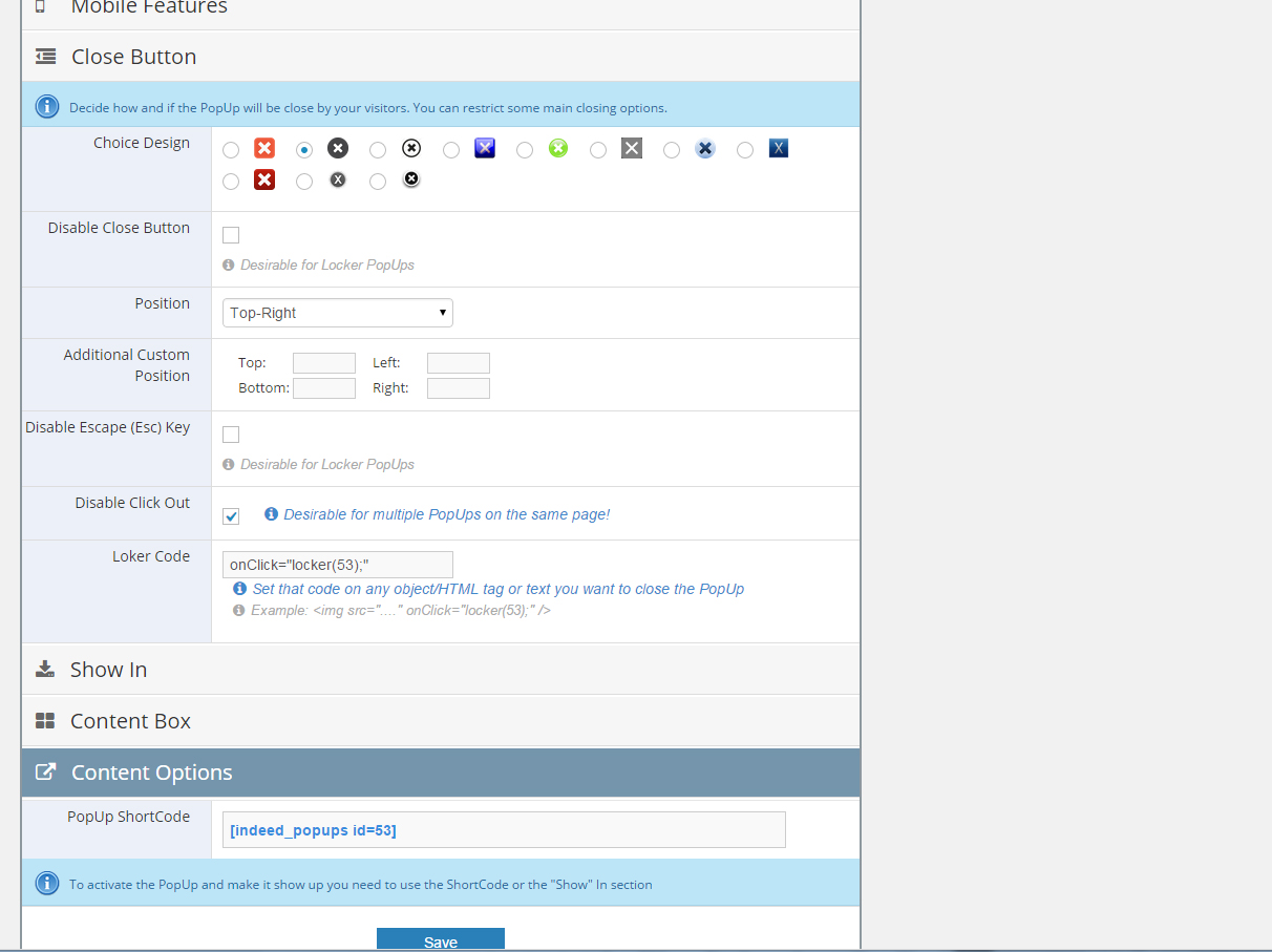 On this section you decide which type and what content do you wanna set into your custom Popup.