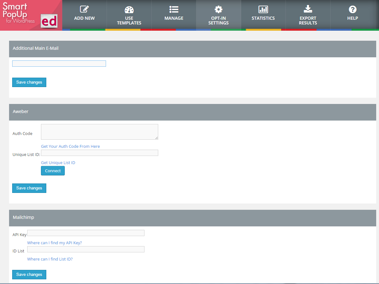 Important: Be sure that you have the Email Marketing properly set from "Opt-In Settings"